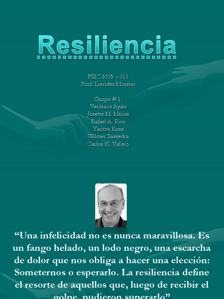 Entienden la resiliencia como un proceso dinámico que conlleva una adaptación positiva en contextos de gran adversidad (luthar et al., 2000, 543). La palabra resiliencia se refiere a la capacidad de sobreponerse a momentos críticos y adaptarse luego de experimentar alguna situación inusual e inesperada. La resiliencia es la capacidad de afrontar las adversidades y lograr adaptarse ante las tragedias, los traumas, las amenazas o el estrés severo. El término resiliencia es originalmente un concepto de física y se refiere a la propiedad que algunos cuerpos tienen de volver a su forma original después de sufrir una deformación elástica. Nos ayuda a superar los desafíos, a parar los golpes del destino y a levantarnos otra vez más fuertes que antes.